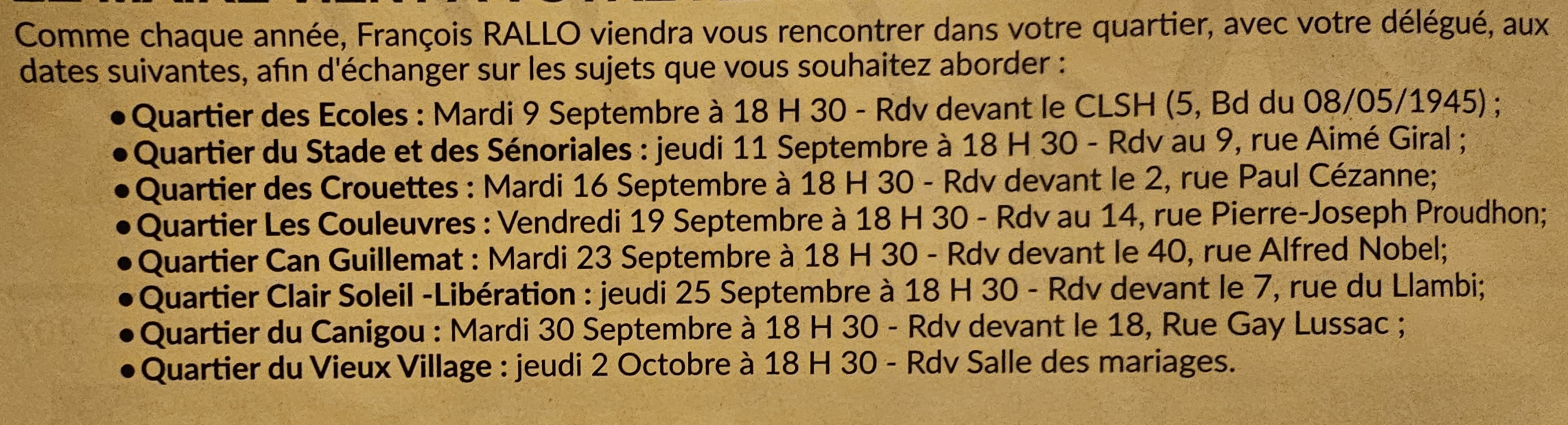 Saleillencques, Saleillencs📌 Dates à retenir !Les réunions de quartier sont un moment clé : l’occasion de rencontrer le maire, les élus et moi-même po…